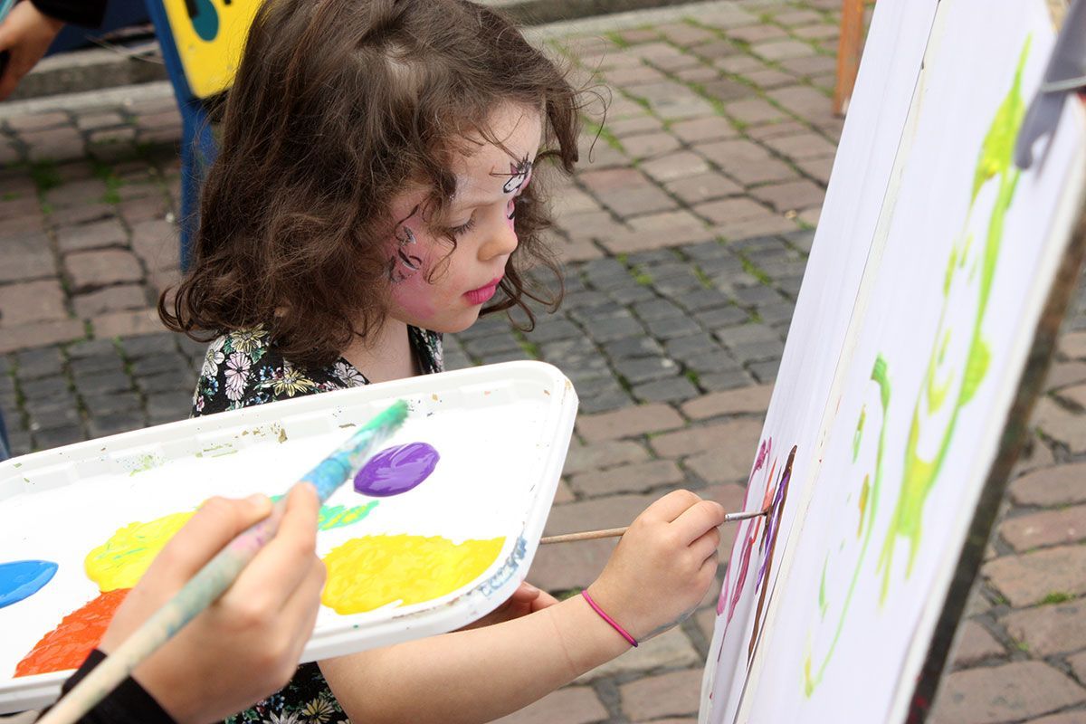 Dieses Angebot richtet sich an Kinder, die gerne malen und sich einmal auf einer großen Leinwand (80x80 cm) austoben möchten. Ausgehend von einem Lieblingsthema werden die Kinder von der Künstlerin Anna-Katharina Rintelen unterstützt und begleitet. Ziel ist, das Vergnügen am Malen zu fördern, Techniken kennen zu lernen, Eigenes sichtbar werden lassen, sich ohne Druck überraschen lassen und zu schauen was entsteht.