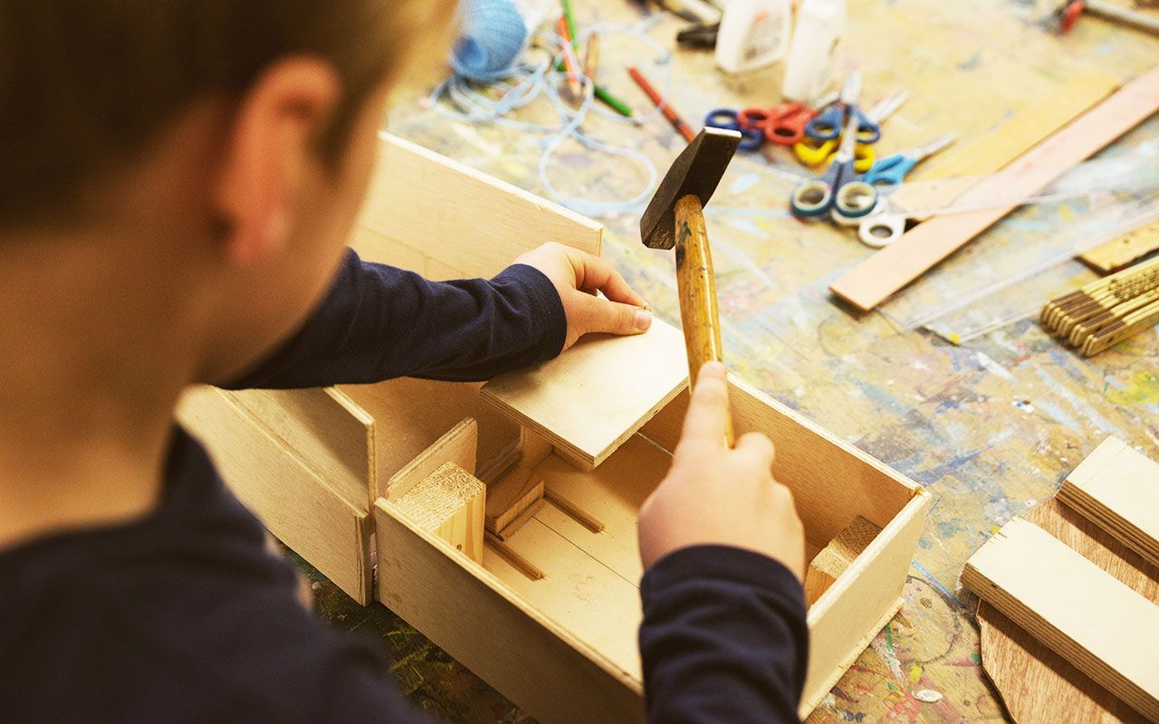 Wir sägen, hämmern, kleben, tüfteln und erfinden verrückte Objekte und Skulpturen.